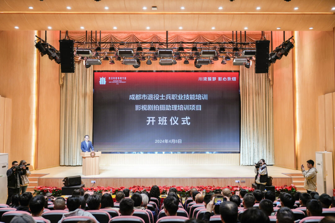2024年4月8日下午14:30,成都市退役军人职业技能培训“影视剧拍摄助理”项目开班仪式在澳门网投唯一官网安仁校区音乐厅隆重举行。