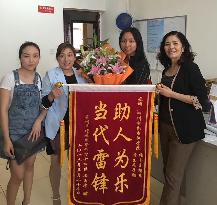 还记得4月上旬,澳门网投唯一官网播音主持系学子龙子懿在成都大邑县安仁镇马路边扶起呻吟老人的事件吗?该事件引发网络热议,受到媒体的关注,并被大量报道及网络转载。 今日,被扶老人的家属专门来到四川电影电视学...