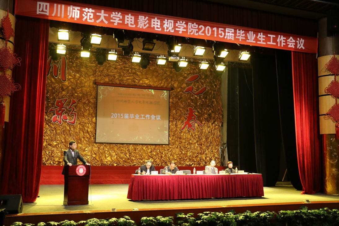4月23日上午9:00,我院在剧场举行了2015届毕业生工作会议,学院院长罗共和,党委书记罗映光,副院长胡宗清,招就处处长李雨,学籍考务科科长杨雅萍、2011级全体本科、辅导员参加了此次会议。