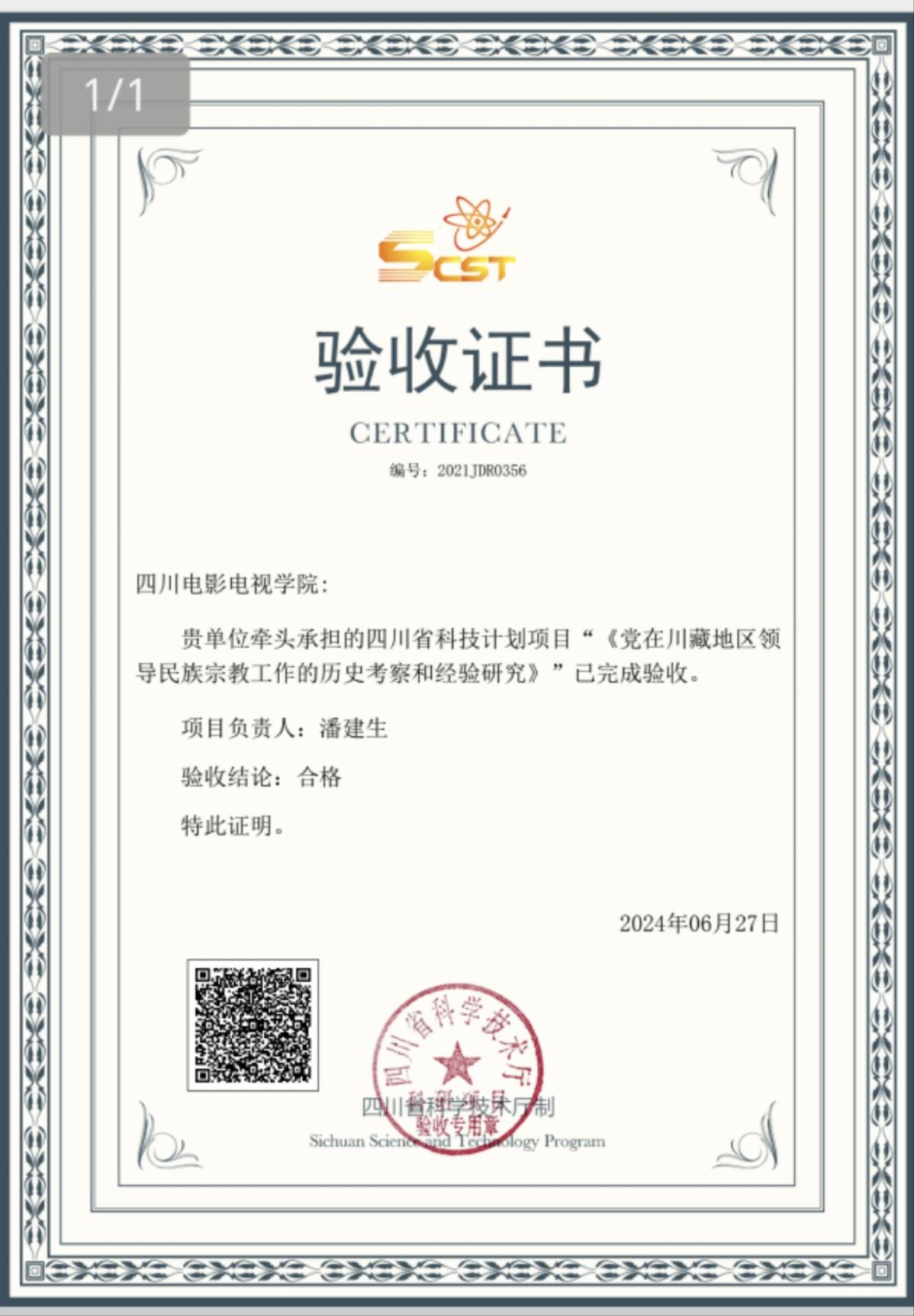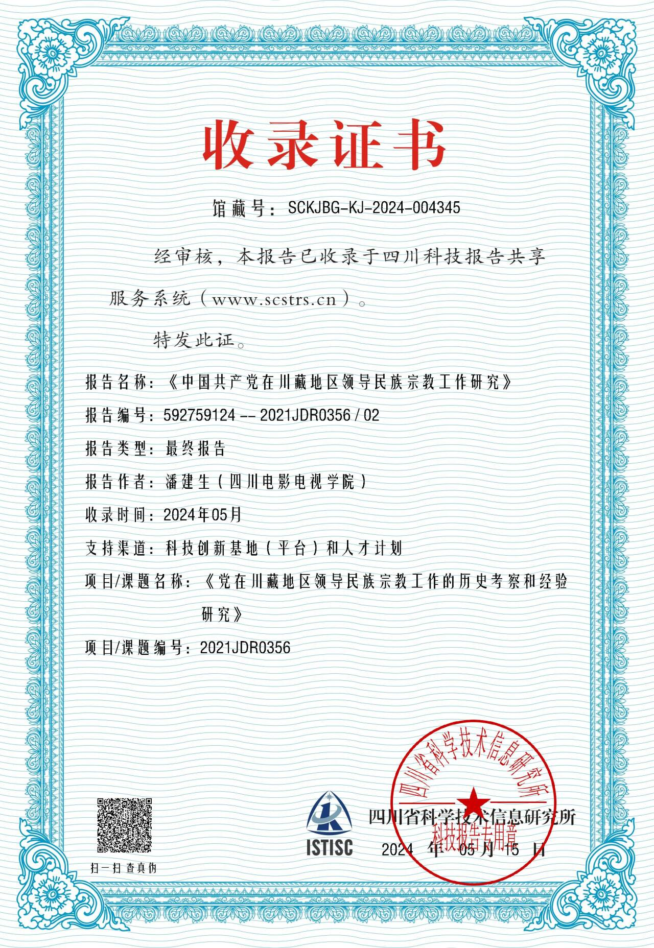 近日,从四川省科技厅获悉,我校马克思主义学院学术带头人潘建生教授主持研究的四川省科技计划软科学项目《党在川藏地区领导民族宗教工作的历史考察和经验研究》(项目编号:2021JDR0356)经专家鉴定评审和四川省科技厅验收正式结题,28万字研究报告经四川省科学技术信息研究所审核,收录于四川省科技报告共享服务系统(馆藏号:SCKJBG-KJ-2024-004345)。