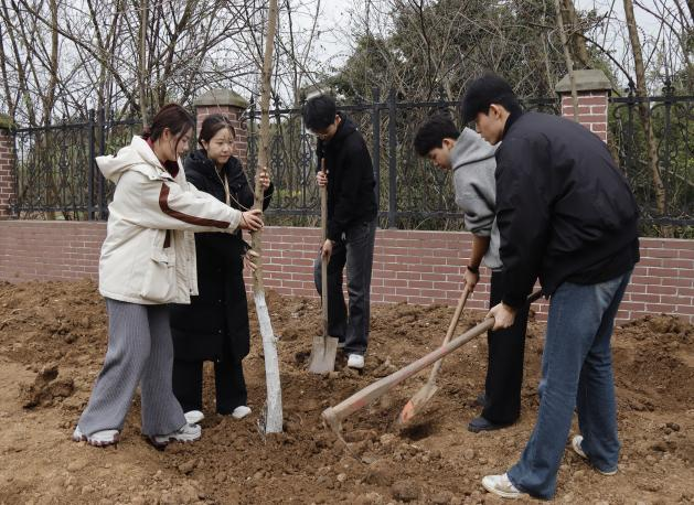 在植树活动期间,同学们通过分工协作,挥锹铲土、扶苗填坑、浇水灌溉,经过一番辛勤劳动,一棵棵新栽种的树苗昂然挺立,在春风中展现出勃勃生机,为初春的校园增添了一道靓丽的风景线。
