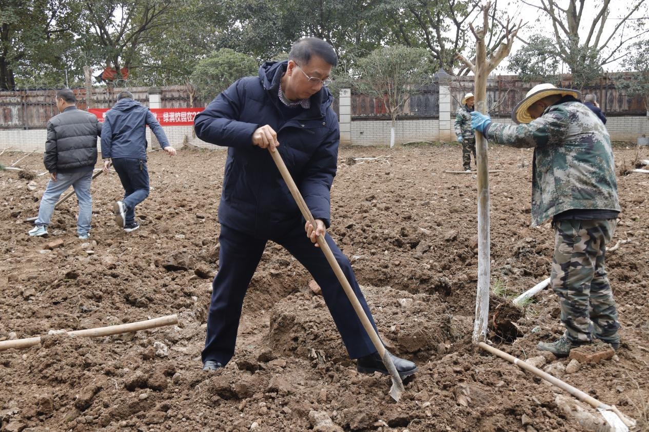 后勤基建处处长柳运西在致辞中表示,此次植树节活动,是学校深入践行绿色发展理念的具体行动,也是加强生态文明教育、培养德智体美劳全面发展的社会主义建设者和接班人的重要举措。他号召全体师生积极行动起来,争做绿色发展的践行者、推动者,为建设美丽校园、美丽中国贡献力量。