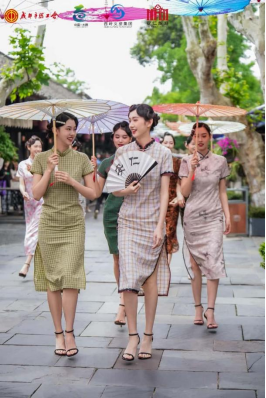 本次活动中,国风走秀《锦色》是川影和邑旅公司合作,与安仁古镇管委会联合策划碰撞出的精彩作品,川影学子们身穿各色旗袍,款款走向舞台中央,吸引数百名游客观众驻足观赏。