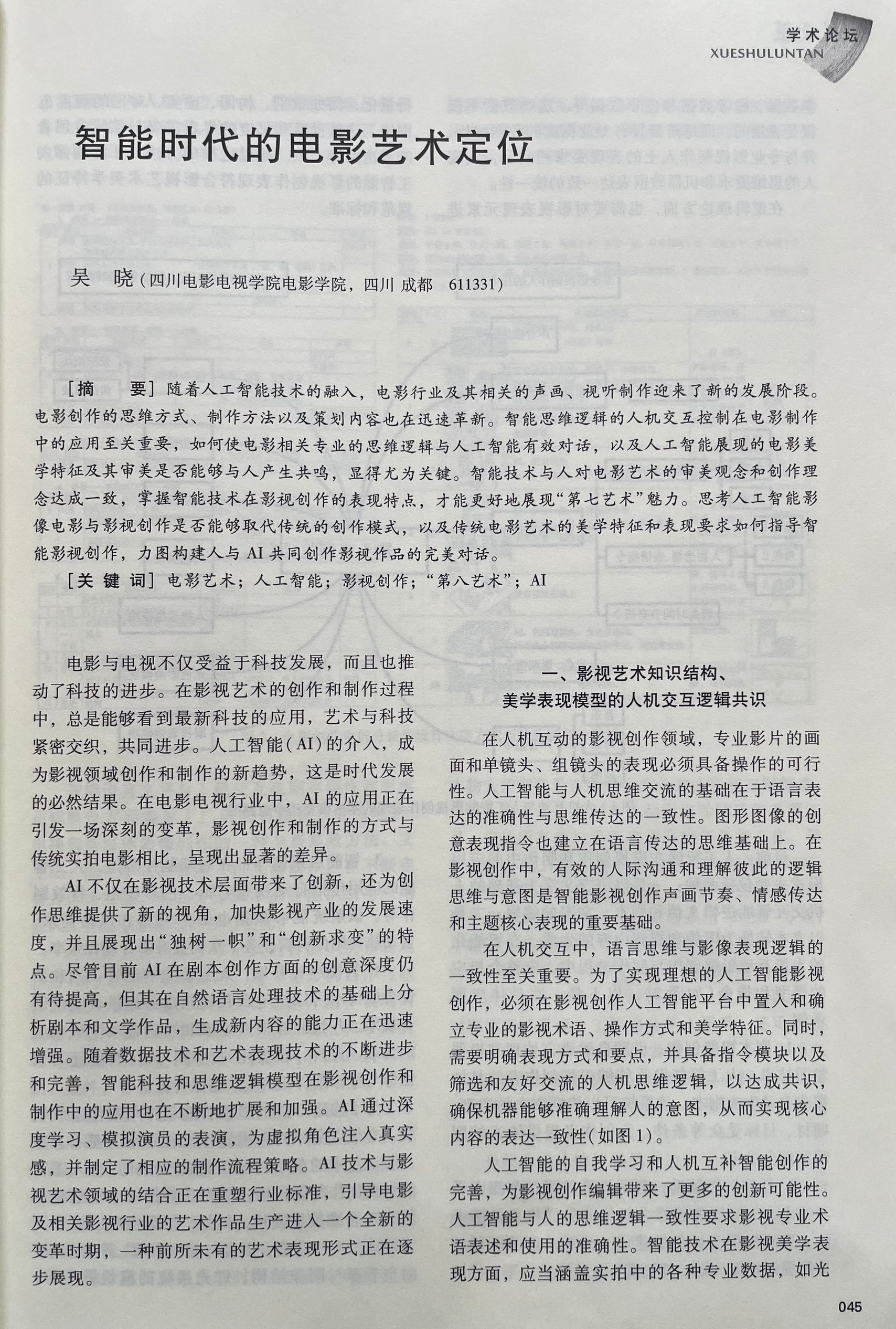 近日,我校吴晓老师撰写的论文《智能时代的电影艺术定位》在全国中文核心期刊《电影文学》正式发表。