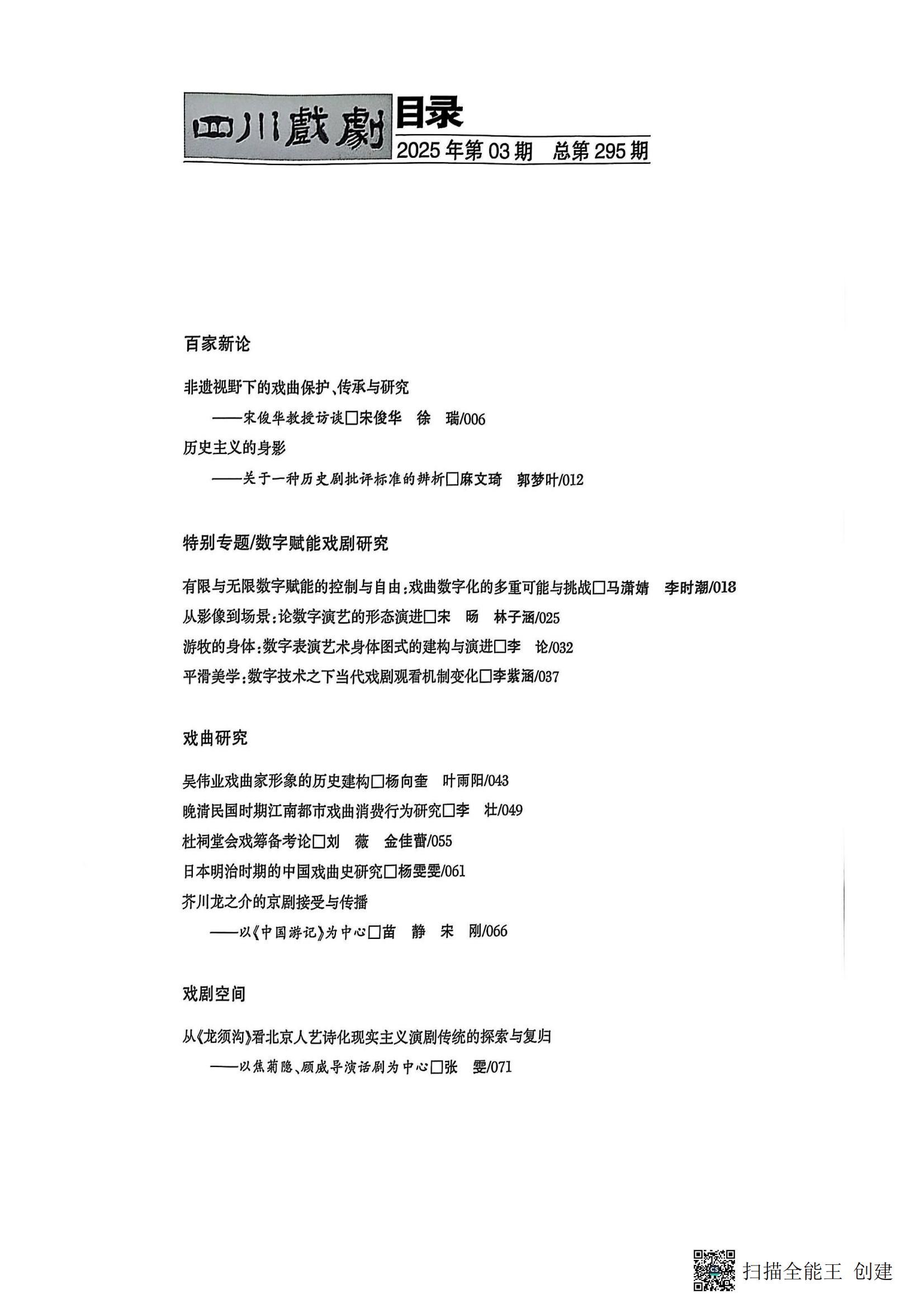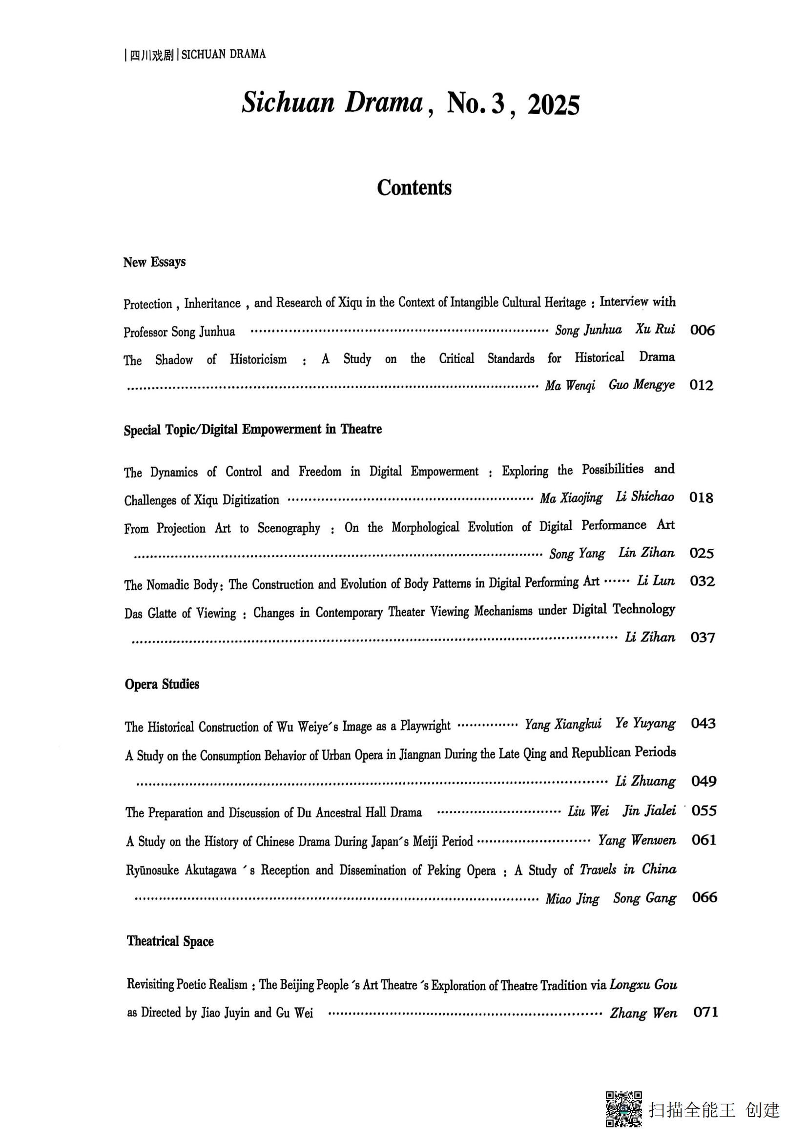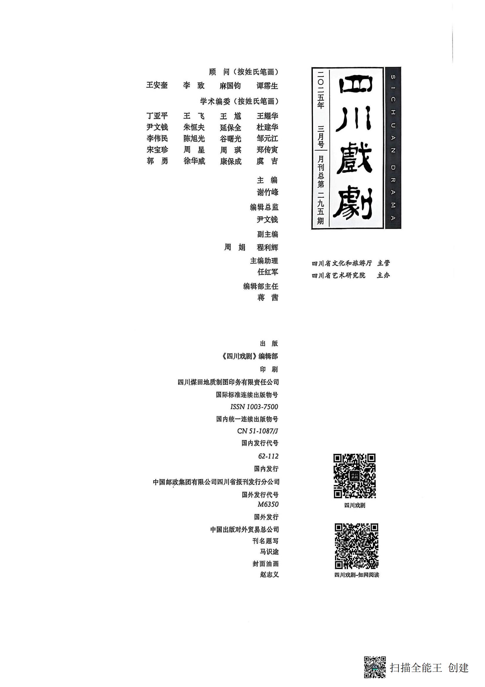 《四川戏剧》是经国家新闻出版署批准,由四川省文化和旅游厅主管,四川省艺术研究院主办的全国中文核心期刊,中国权威核心学术期刊,致力于以戏剧艺术为主并综合人文社会科学的学术期刊;是四川省振兴川剧及抢救非物质文化遗产的重要阵地和窗口,也是四川省唯一面向国内外公开发行的艺术类专业期刊,旨在加强戏剧理论、艺术现象研究,蘩荣戏剧文学,活跃戏剧评论。北京大学《中文核心期刊要目总览》来源期刊:1992年(第一版),1996年(第二版),2000年版,2004年版,2008年版,2011年版,2014年版,2017年版,2020年版,2023年版。