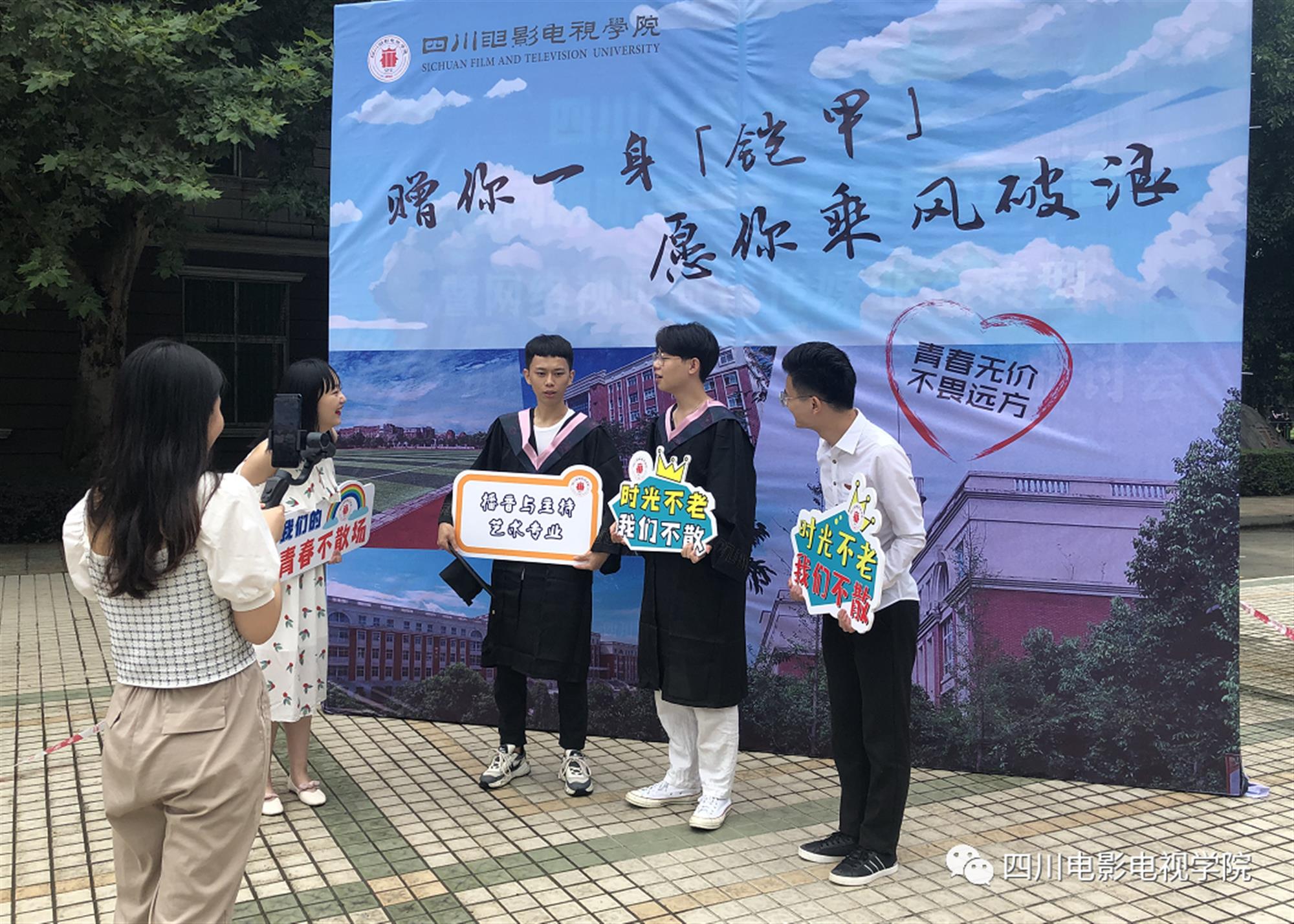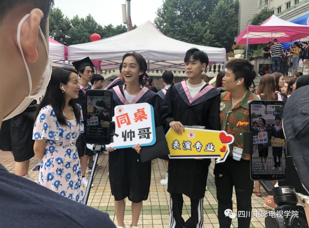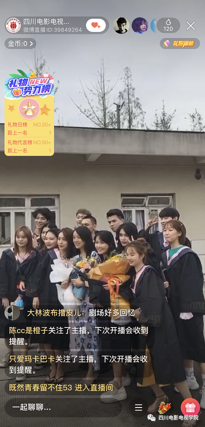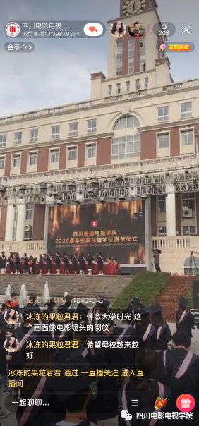 直播过程中,由川影师生组成的主播上线,带大家漫步校园、讲述校史、暖心互动,一起回顾校园时光,感慨相聚与别离。