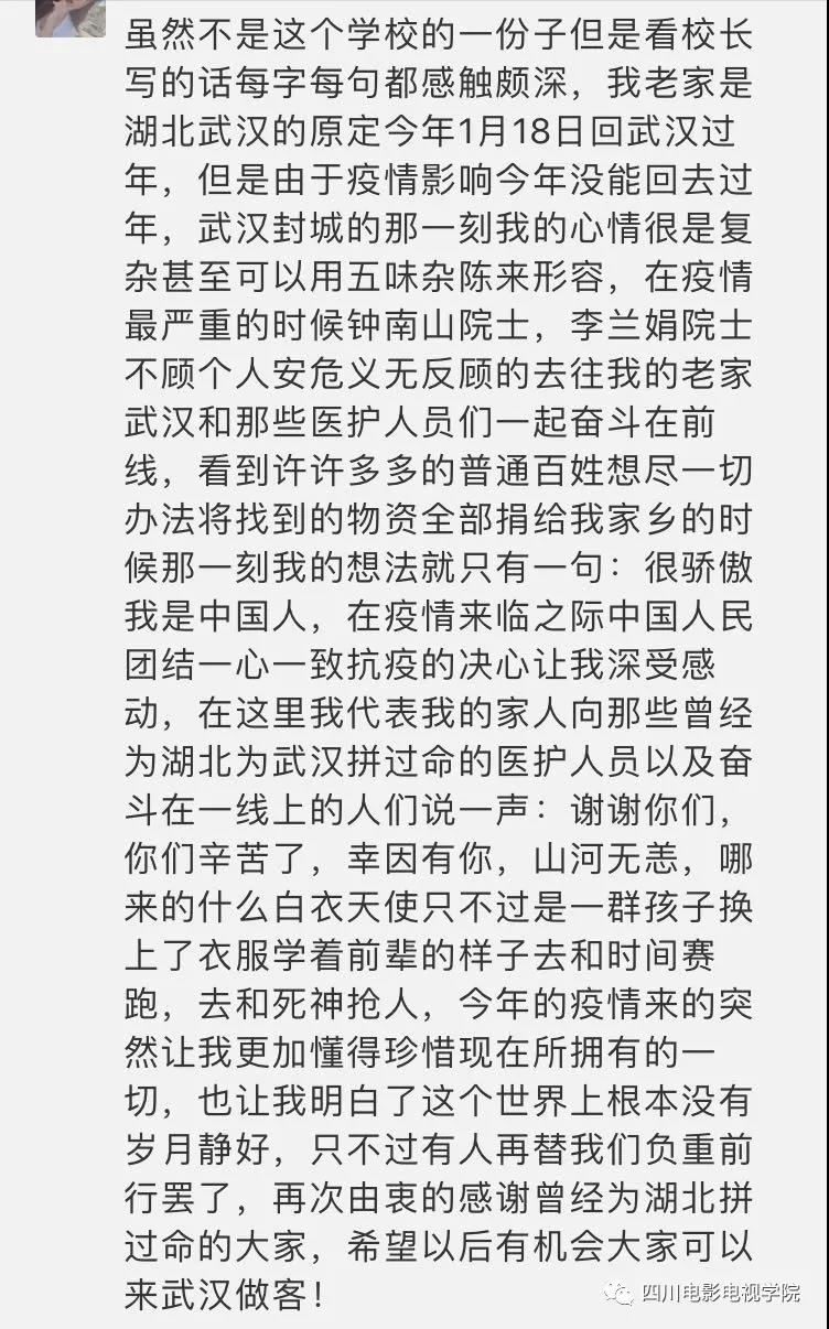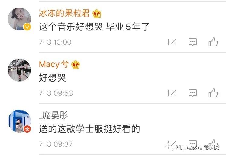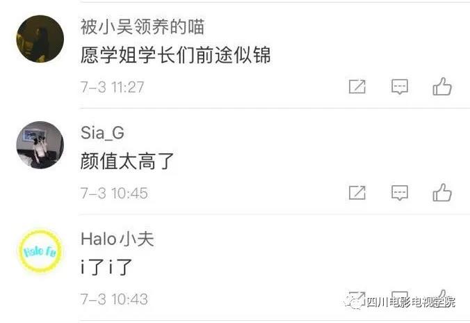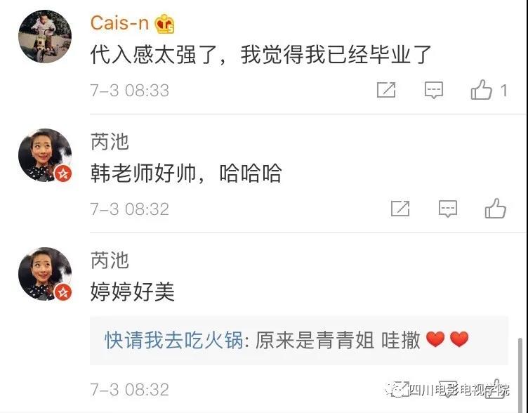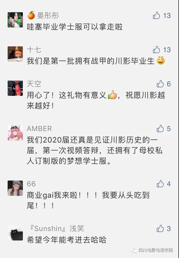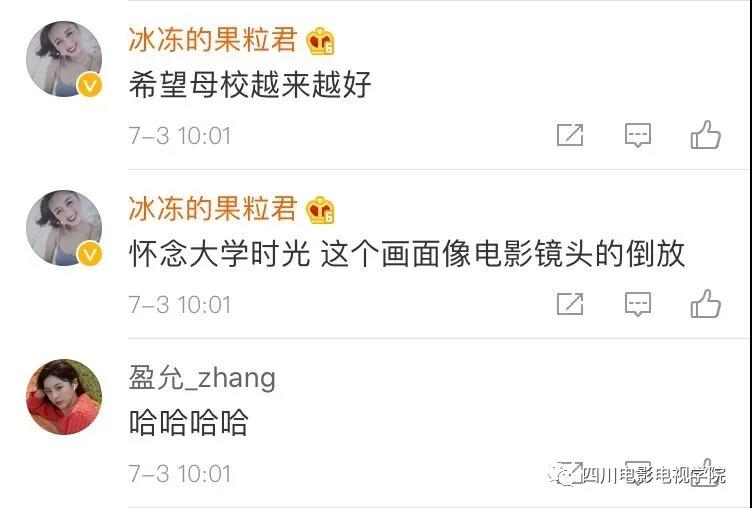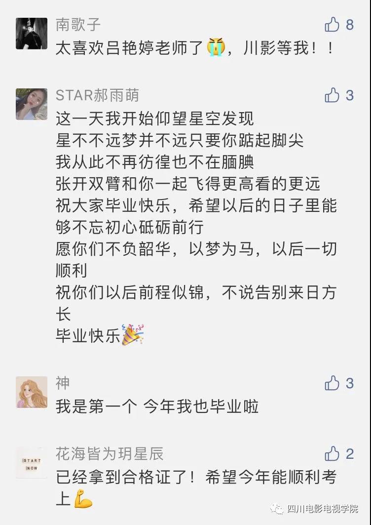 直播开始后,川影的官方微信、微博和抖音号的评论区也持续收到了许多祝福的留言: