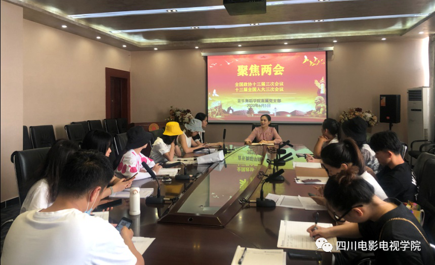 6月5日,音乐舞蹈学院直属党支部部分在校党员、预备党员在贡院二会议室学习两会精神。