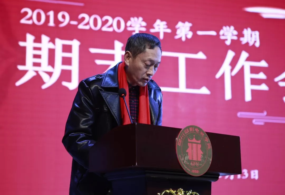 2020年1月13日下午,澳门网投唯一官网在金牛校区演播剧场召开2019-2020学年第一学期期末工作会议。会议旨在总结一学期的卓越教学经验,精准剖析人才培养最优路径,不断推进教学改革,为进一步提升教学质量做好充分准备。学校董事长黄元文,校长罗共和,党委书记罗映光,常务副校长李健,副校长王潞明,副校长叶文林,党委副书记、学生处处长韩卡兰,工会副主席刘国富,教学总督导翁如,教务处负责人及各院系部处领导出席,全体教师参加大会。