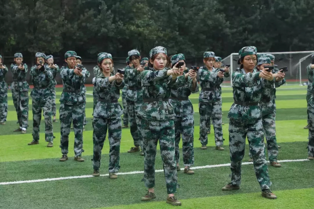 谁说女子不如男?操练场上的“花木兰”,军训中的“铁娘子”们整齐有序地登场表演,马尾辫飘扬,芊芊玉手坚韧,一套匕首操在川影女孩们手中淋漓尽致地展现。当女子的柔碰撞军营的刚,美人如玉剑如虹,美丽因此而升华,两者结合则女子更加完美!