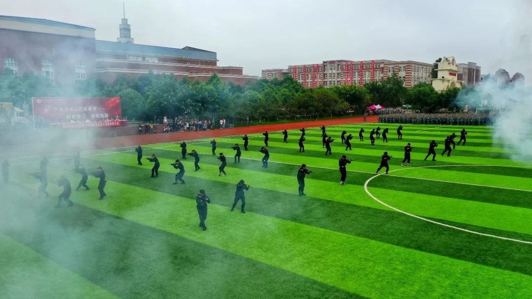 大邑县人民武装部军事科科长苟国平同志在讲话中肯定了此次军事汇演的完美表现,并对所有参训同学及教官给予鼓励。他希望军训学员们在往后的学习中,能够坚持军训磨砺出来的不怕苦、不怕困难的品格,努力学习,报效祖国。