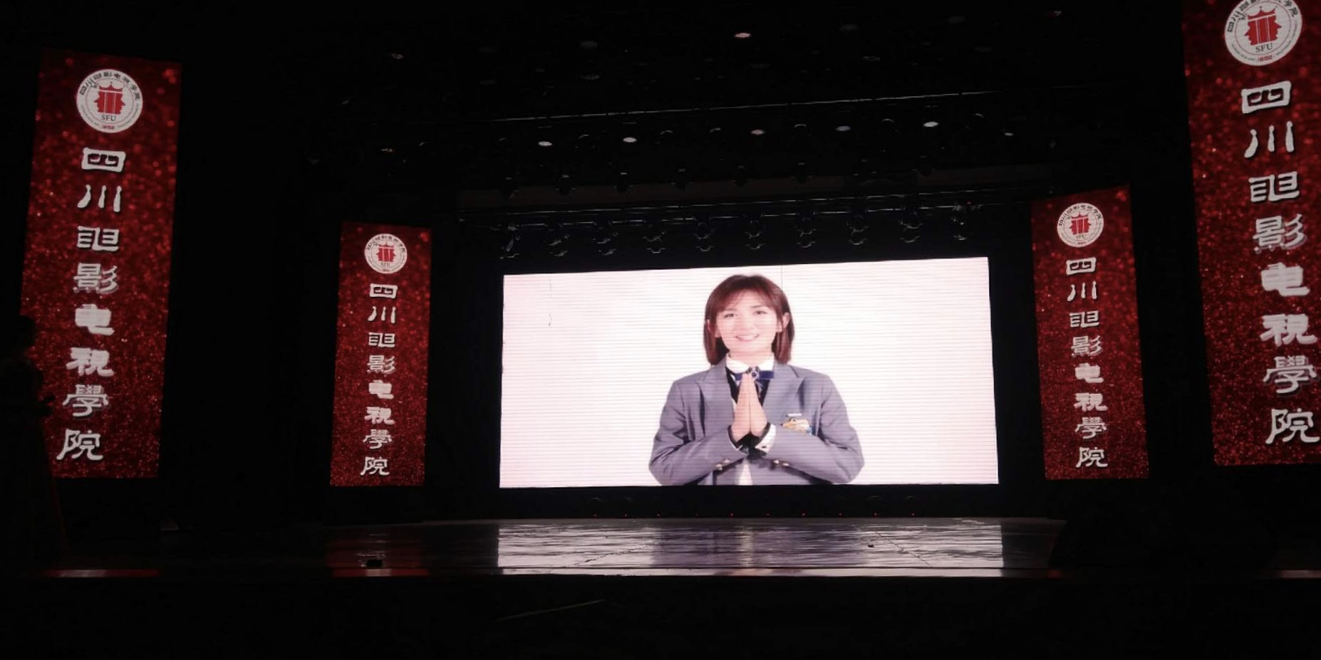 谢娜祝贺学弟学妹的视频在晚会上播放