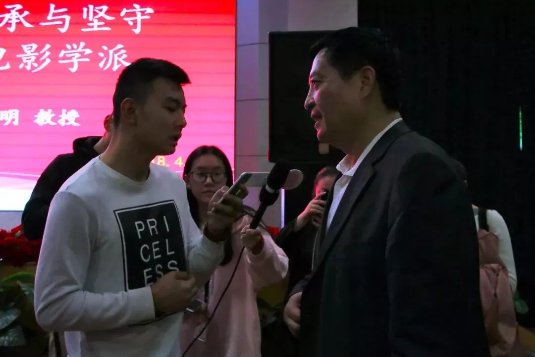 随后,在场师生踊跃向侯书记提问,侯书记一一进行了解答。在回答“如何将电影高等教育与管理紧密结合”时,侯书记认为,要尽快融入新的文化,要有艺术家的功底、政治家的素养和教育家的风范,要热爱电影教育事业,热爱学生,同时了解世界电影行业的发展趋势,才能做好管理工作。他指出,教师是人类灵魂的工程师,而电影本就具备教育功能,那么电影则是人类灵魂工程师的工程师,要怀揣梦想,为实现电影教育梦想而勇于坚守。在回答“对川影进一步发展有怎样的见解”时,侯书记特别强调目前北影川影面对很好的发展机遇,如何抓住机遇,如何把握好国家政策与电影教育发展之间的关系,显得尤为重要。