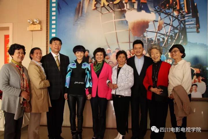 图为谢娜、李佳明回母校川影看望院领导与恩师