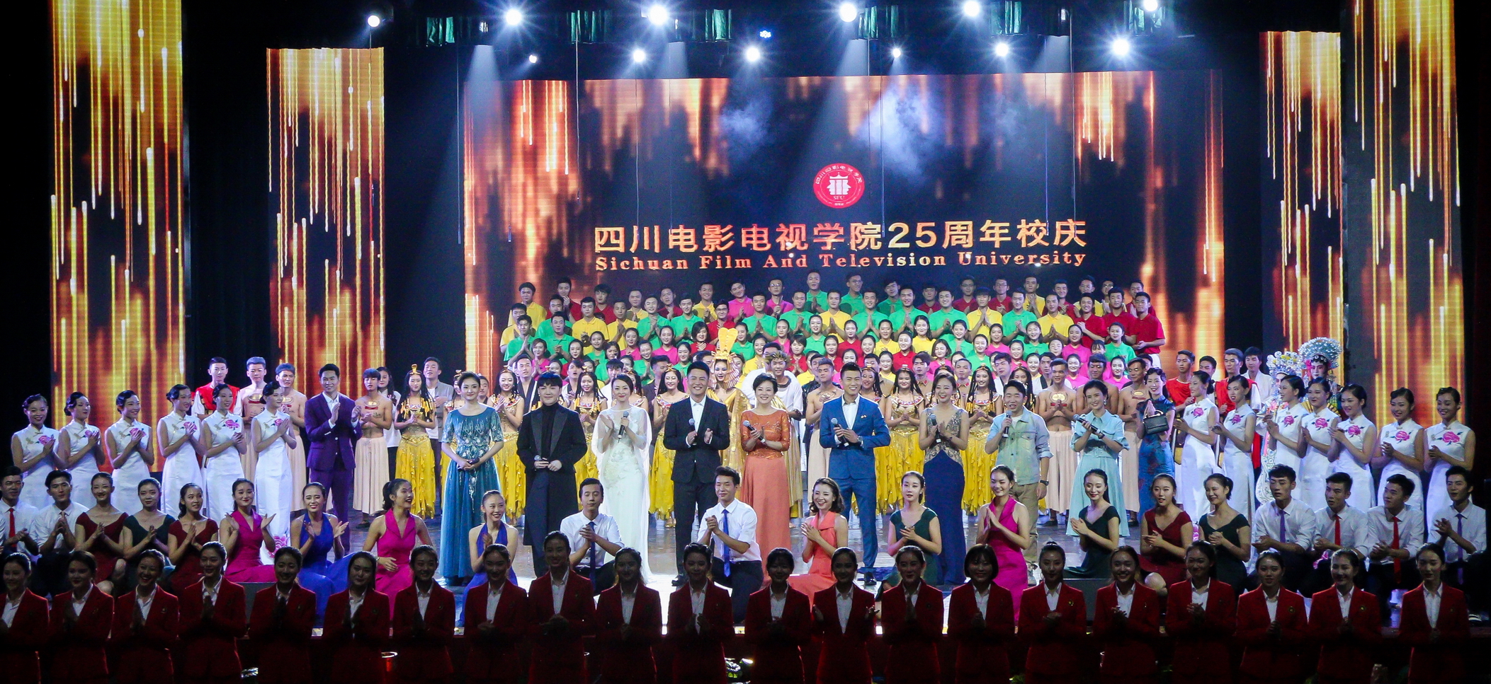 一呼百应!川影毕业生李佳明、杨乐乐、施丹、肖骁、杨迪、张鹏程等众明星校友回母校参加学院25周年校庆庆典演出,同庆母校25岁生日,深刻展示了川影“校友文化”与师生情深谊长。