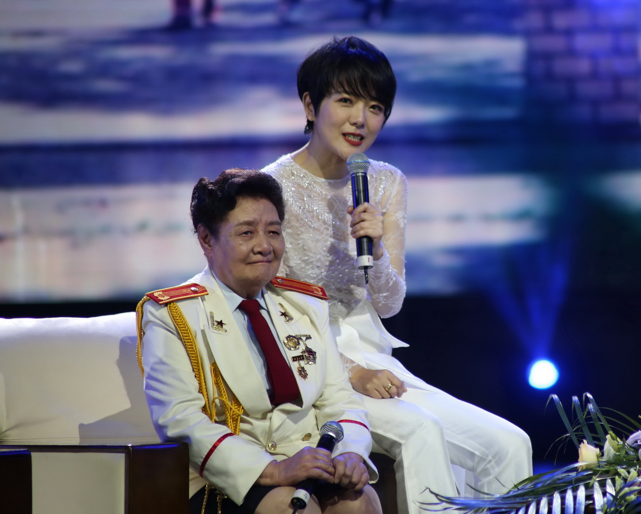 乐乐与恩师黄院长依偎着说悄悄话