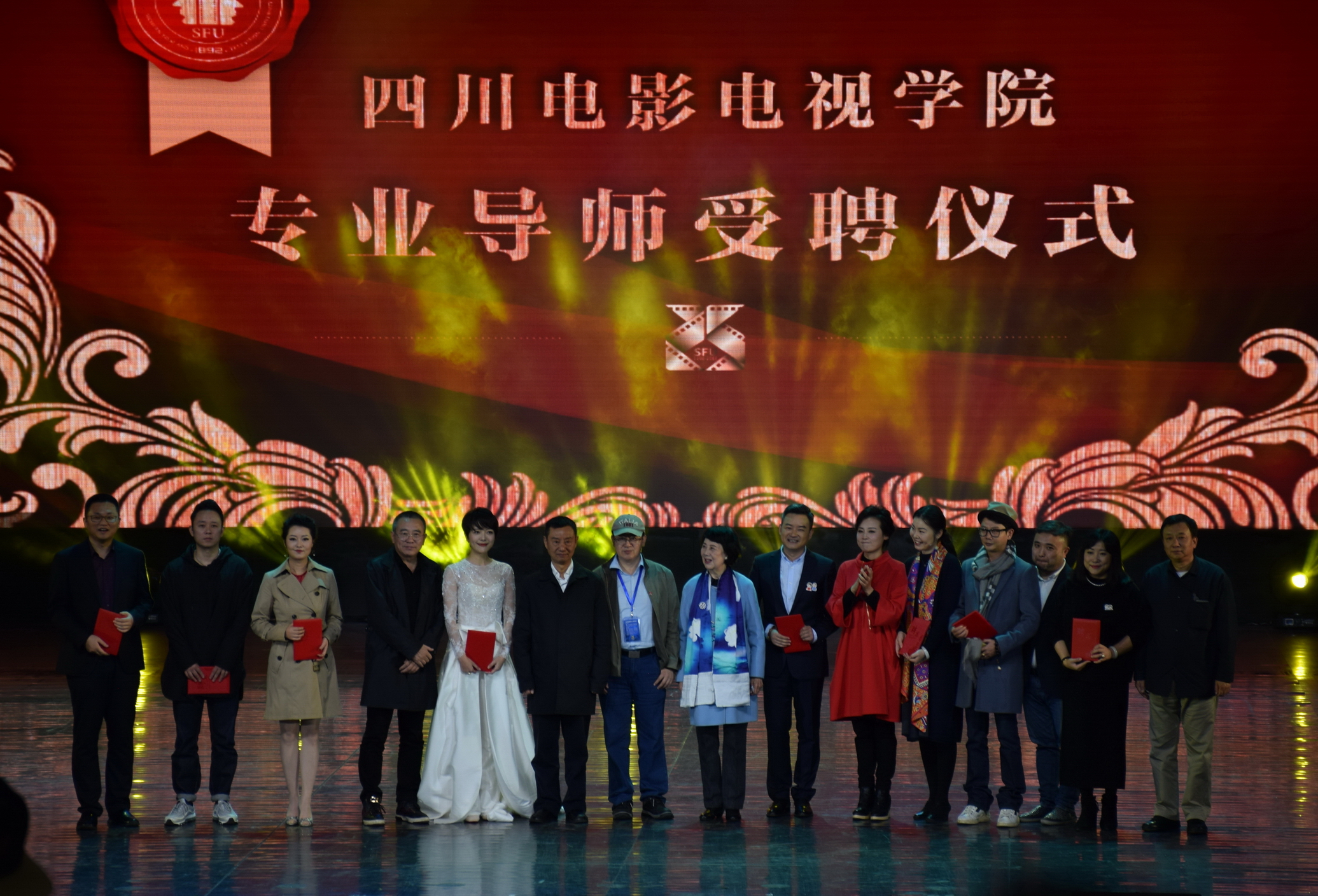 以下为川影毕业生代表上台接受领导、专家颁发的专业导师聘书图片: