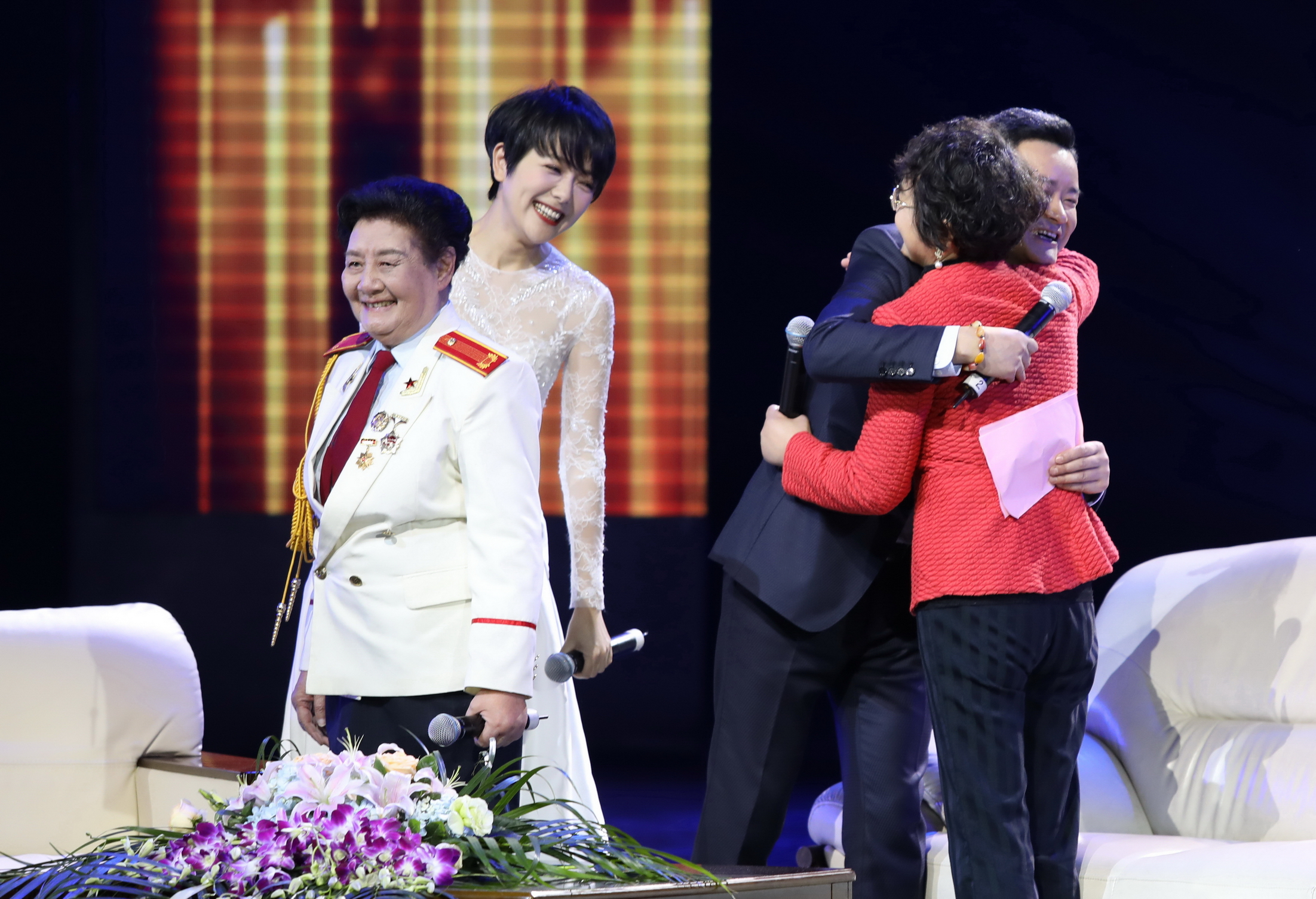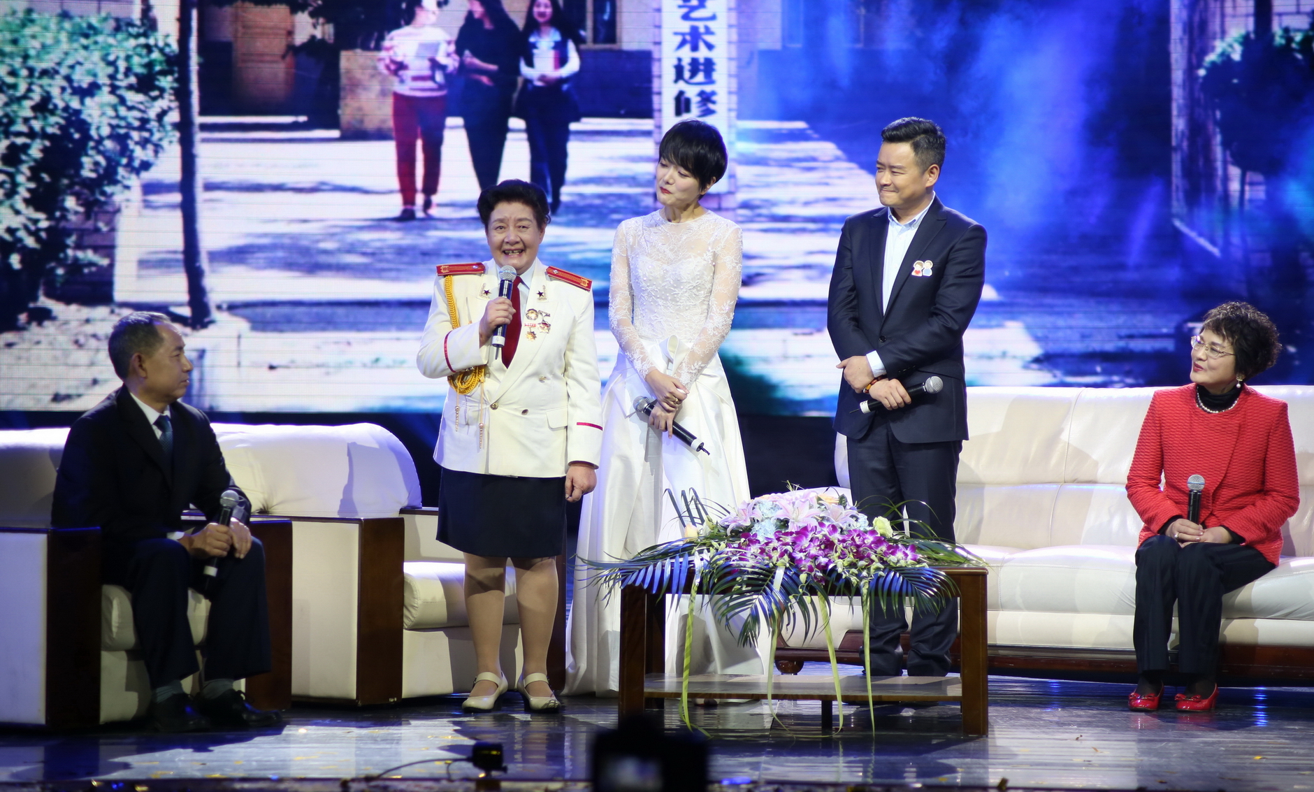 在采访澳门网投唯一官网董事长、四川省中青年德艺双馨艺术家黄元文,著名表演艺术家、学院名誉教授邓敬苏,学院图书馆副馆长史存霖三位很有代表性的恩师访谈环节,令人感动万分。李佳明、杨乐乐紧紧依偎着恩师,佳明向敬爱的黄院长提了一个特别诚挚的问题:“您今天有什么感想?”黄院长深情地说:“时间太快了,看到学生们家庭幸福、事业有成,我特别高兴。学校的成功在于让我们的学生人生幸福。”一旁的杨乐乐几度哽咽落泪,“看到老师们如今都身体健康、依然美丽、神采奕奕,这就是学生最大的心愿。热爱艺术的人永远不会老,永远有梦想”,乐乐说道。