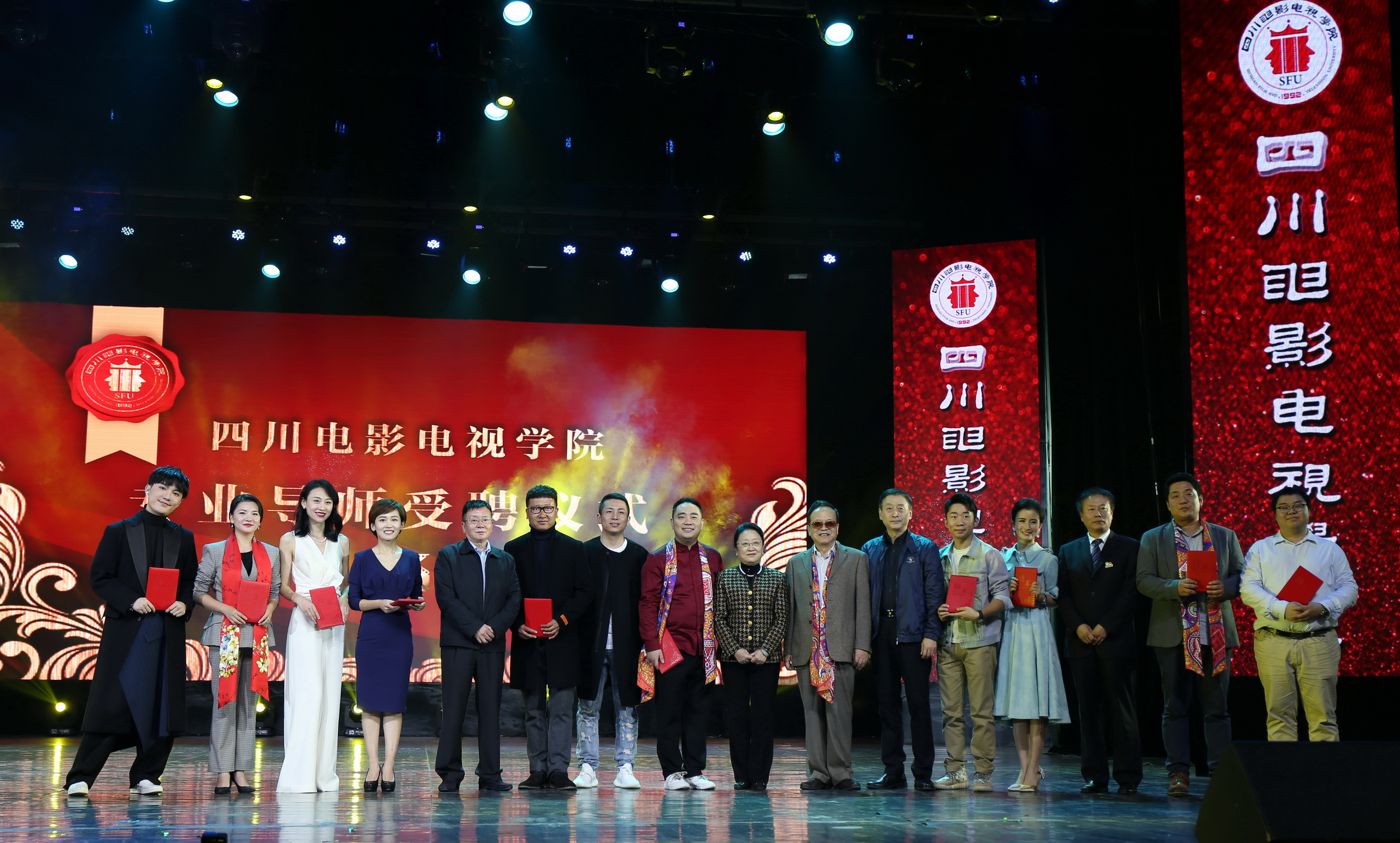 庆典一大亮点是由川影党委书记罗映光教授宣布了一项振奋人心的决议,聘任谢娜、李佳明、李易峰、杨乐乐、肖骁、杨迪、张鹏程等153名精英校友担任在校生“专业导师”,将对母校培育的感恩回馈给学弟学妹。这一创想雄辩地证明了学院25年来所培养的优秀毕业生具备的强劲实力及斐然成就,豪迈佐证了办学的成功。同时使得在校生能够从杰出的师哥师姐身上吸取宝贵知识、行业经验及强大的精神力量,促进他们进步与成功。川影杰出校友——中央电视台主持人李佳明,湖南卫视主持人、制片人杨乐乐,央视体育频道主持人施丹,成都电视台主持人袁莉,成都电视台主持人王婵,西藏自治区党委网信办总编室主任编辑漆家颖,佰鼎传媒董事长李英晟,京视沐书董事长罗书,话剧导演、演员、配音演员陈浩,陕西卫视主持人郑毅,腾讯新闻传播中心主编何宾,深圳美潘梅贸易有限公司董事长郭琨,上海东方卫视主持人伏玟晓,主持人、影视演员杨迪,鼎恒集团董事长张鹏程,华谊兄弟传媒集团制片人周子健,四川剧能量文化传播有限公司总经理周士沦,山东电视台主持人尚菲菲,中国高级礼仪师、“颜小姐”品牌创始人颜睿,阿里云大中华区产品营销经理曹林,综艺节目主持人、演员肖骁,天津电视台主持人吴军,四川电视台新闻频道SNG卫星直播主持人祝莉娟,中玮海润集团联合创始人、总经理钱海,陕西电视台主持人金鑫,宜宾电视台主持人赵杰,神奇互娱联合创始人、神奇影业CEO贾佳凡,四川电视台主持人郭津,湖北荆州电视台首席主播汪芸,供职于全国妇联、负责公益传播的郑斯榕,设计师、视觉艺术家殷九龙等作为导师代表,上台接受了领导、嘉宾颁发的聘书。这是学院独树一帜的“校友战略”,为学生与“行业零距离”构建坚实桥梁。利用川影25年所培养的、已在国内影视传媒等各行各业大有作为的校友们的巨大影响力和感召力,极大推动学院各项发展。