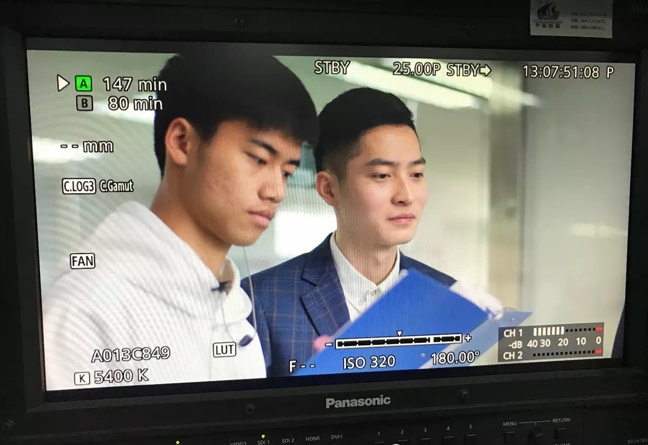 从执行制片人到客串“新闻部主任”,周老师的雷厉风行和言词厉色,堪称本色出演,场记本上连续的远、中、近、特、四个景别连过,坐实了这一点。据导演组说,他们非常感谢学院对本片的拍摄予以的大力支持,不仅提供了刚获批省级示范实训基地的高清一体化制作电视演播室,还有LED灯、无线图传、摇臂等设备。