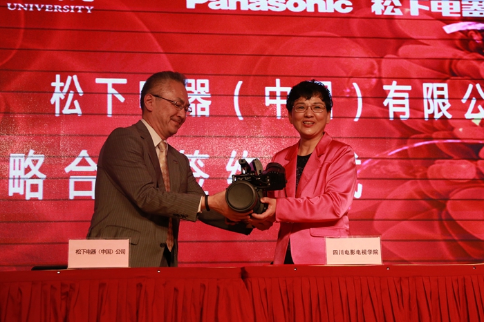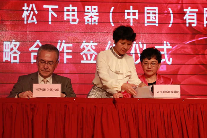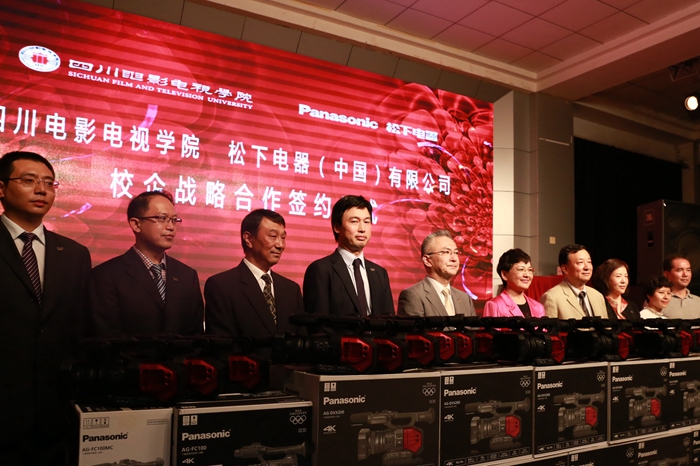 9月20日,澳门网投唯一官网与松下电器(中国)有限公司正式签订校企战略合作协议。双方将共建世界一流的松下广电产品体验基地。该基地在作为川影的松下先进广播电视教学中心的同时,还将作为松下电器在中国西南地区的官方专业级产品形象推广及客户体验、培训中心。松下将向川影持续提供全球最新最高级别的专业级广播电视设备进行优先试用。松下将先期为川影提供一批当下最先进的广电摄录制作设备及器材,其中包括P2高清肩扛式摄录机、Varicam 4K数字摄影机、16比特演播室摄像机及控制单元、多格式切换台、大屏幕4K液晶监视器等目前世界最先进的广播影视摄录设备。这无疑将极大提升学院专业设施建设品级,大幅提高实践教学质量。