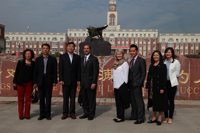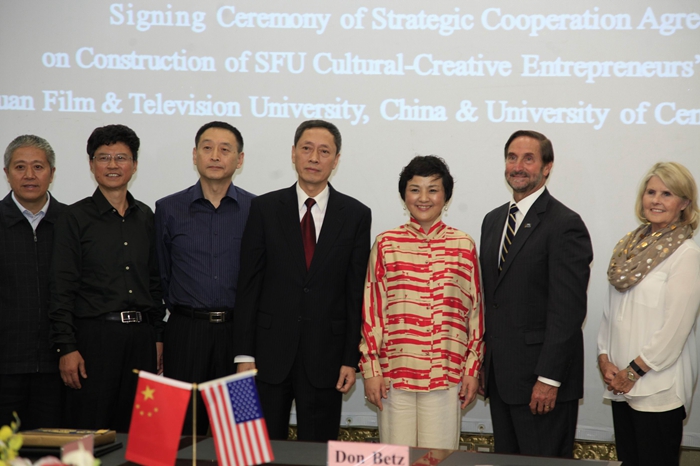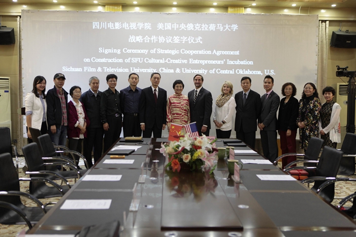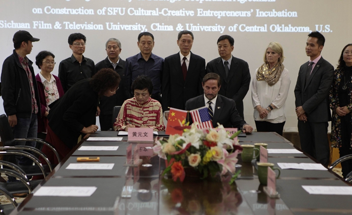 2015年10月10日,美国中央俄克拉荷马大学校长Don Betz博士一行与川影正式签订共建“澳门网投唯一官网文化创新创业园”战略合作协议。Don Betz博士一行在学院董事长黄元文、院长罗共和、党委书记罗映光等领导陪同下,先后参观了安仁、金牛校区,听取了学院关于“文化创新创业园”的设计方案。Don Betz博士表现出极高的关注度,他说这是一个极具意义的创举,将成为高校示范性影视基地,希望大力配合学院推动“文化创新创业园”的建成。