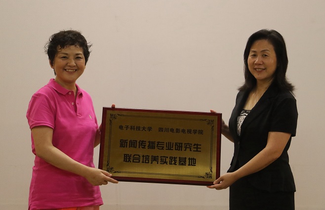 最后,双方举行了新闻传播专业研究生联合培养实践基地协议签字仪式。川影罗共和院长、电子科技大学申小蓉副书记在协议上签字。同时举行了“新闻传播专业研究生联合培养实践基地”授牌仪式。仪式在双方合影留念中圆满结束。