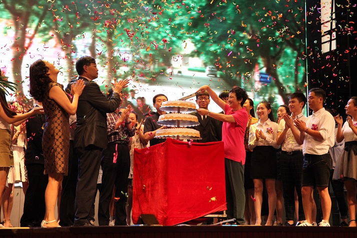 尾声,最敬爱的学院黄元文董事长、罗共和院长等领导为毕业生送上了毕业蛋糕。
