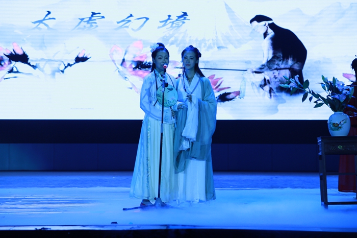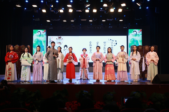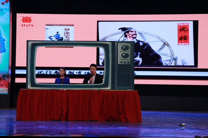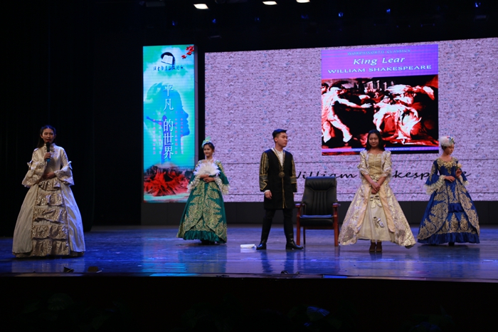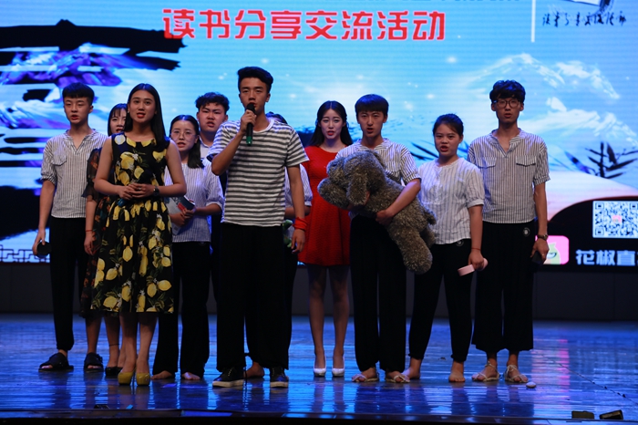 据了解,本次活动分为两个环节,一是书林争霸,共七个分享节目,二是畅想书韵。其中历史题材网络小说《圣人请卸妆》中,分享者语言幽默风趣,表演活泼滑稽,配合默契,以独特方式展现了书中内容,赢得现场同学们阵阵掌声。