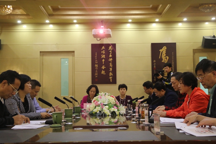 学院院长罗共和汇报了学生就业创业工作开展情况。他介绍到,学院一次性就业率很高,这是由于学院注重应用型人才的培养,大一就开始职业选择教育,大二进行技能的培养,大三将专业活动与广电行业紧密结合,同时举办大型校园双选会,将学生导流至人才市场,而大四时学生大都已在单位工作。另一方面,学院紧跟时代的步伐,鼓励学生自主创业,尤其鼓励他们走向新媒体行业。学院还重视党的教育,开展了大量党团学活动和专业艺术活动,全院学生参加党课学习率高达92%。