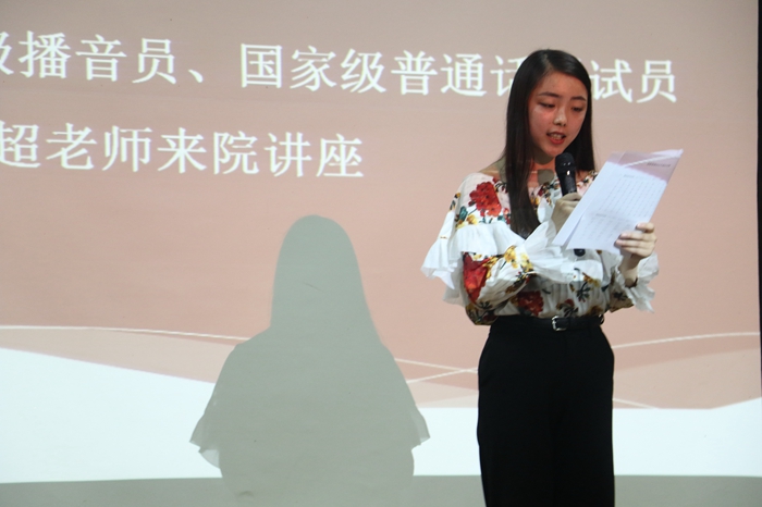 5月10日,国家一级播音员、国家级普通话测试员、金牌主持人张超莅临学院讲座,针对普通话测试标准、需要注意的问题等进行讲解。15级表演系同学到场聆听讲座,学院表演系主任唐华军等专业老师、辅导员莅临。