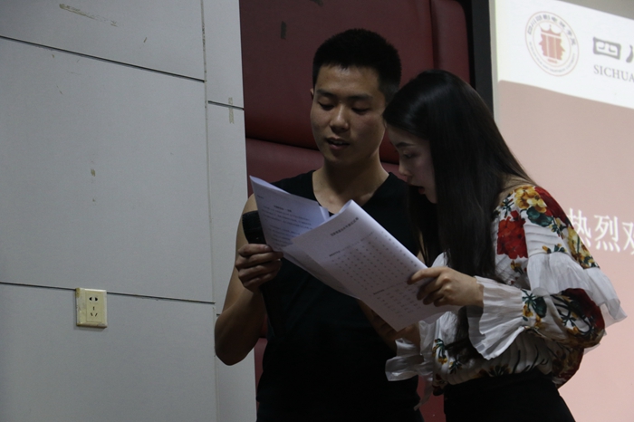 讲座中,张超老师邀请几名学生上台进行朗读测试,分析他们发音存在的不足,详细说明了扣分原因,并作示范,表示学生在朗读过程中要注意语速及口语话问题。同学们与张老师积极互动,他们表示这次收获的不仅是普通话测试技巧,更是对语言有了全新层次地认识。张老师特别称赞了川影学子的专业水平以及普通话水平,祝福他们拥有更好的未来。