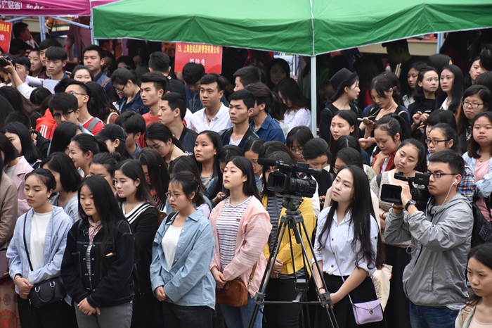 上午9:00,贡院广场人潮涌动,学院院长罗共和致辞时,代表全体同学向来参会的企业表示感谢和敬意,学院希望把握好每次双选会为学生服务,与行业、企业共谋人才培养及用人事宜,希望同学们在今天能够结合自身优势,拓宽就业思路,合理地把握好就业机会。