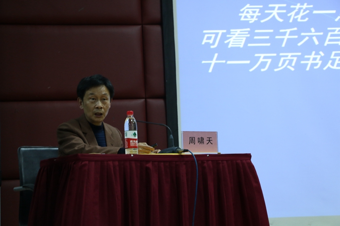 周教授以犀利的言论深度剖析了文学的价值和传承。他说,主动看书的人很少,当然也有部分“低头族”在碎片时间阅读,容易造成“断章取义”,无法真正领略书中的内涵。他从毕生研究的古诗词出发,阐明了阅读的重要性。