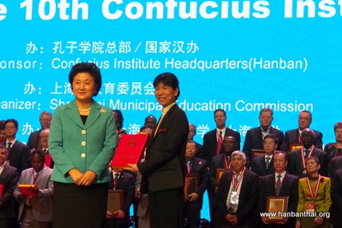 值得一提的是,丰雅老师在泰国孔敬大学孔子学院教学期间,凭借自己的努力与付出,从28名公派教师中脱颖而出,成为2014—2015年度国家汉办对公派教师考核的两名“优秀”之一。今年1月,丰雅老师更是以该院参加考试的教师最高分成功通过国家汉办组织的《国际汉语教师资格证》考试。