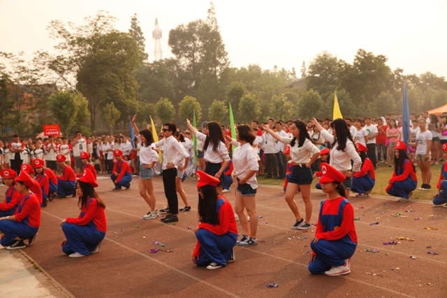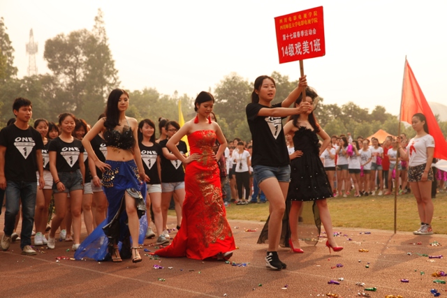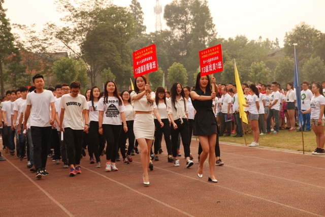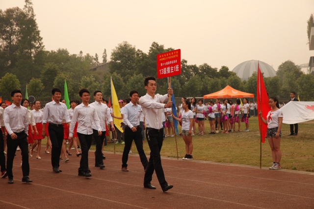 4月30日,学院第17届春季运动会在学院运动场拉开序幕。副院长黄元文、党委书记罗映光及各系处领导出席了开幕式,程坚处长主持开幕仪式。入场式上,由12级戏文四班所组成的彩旗队昂首阔步率先入场,紧随其后的教师队伍更是热情洋溢。肩负重要责任裁判员方队严肃冷静,步伐坚定。各班级方队独具特色,14导1和14表演艺术班方阵的舞蹈给人们留下了深刻的印象。入场式结束后,全体人员奏唱国歌,罗书记致开幕词,裁判长和运动员代表分别宣誓,王海龄副处长宣布获得“最佳风貌奖”的班级。随后,黄院长宣布本次运动会正式开幕。在各项比赛正式开始前,学院2013级同学们为大家奉献了精彩的团体操表演。团体操表演结束后,比赛正式开始。本次运动会共设有乒乓球迎面接力赛和踢毽子比赛两项教职工趣味项目,以及男子100米、200米、女子50米、100米比赛和男女混合4x100、15x50迎面接力赛。经过激烈的比赛,各项比赛绝出了冠、亚、季军。