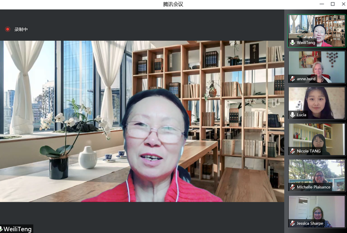 Colby教授发言后,英语教学部的唐丽敏老师对“疫情下的文化交流——以巴蜀文化传播为案例”做了主题演示,向美方老师介绍了巴蜀文化的构成和特点。