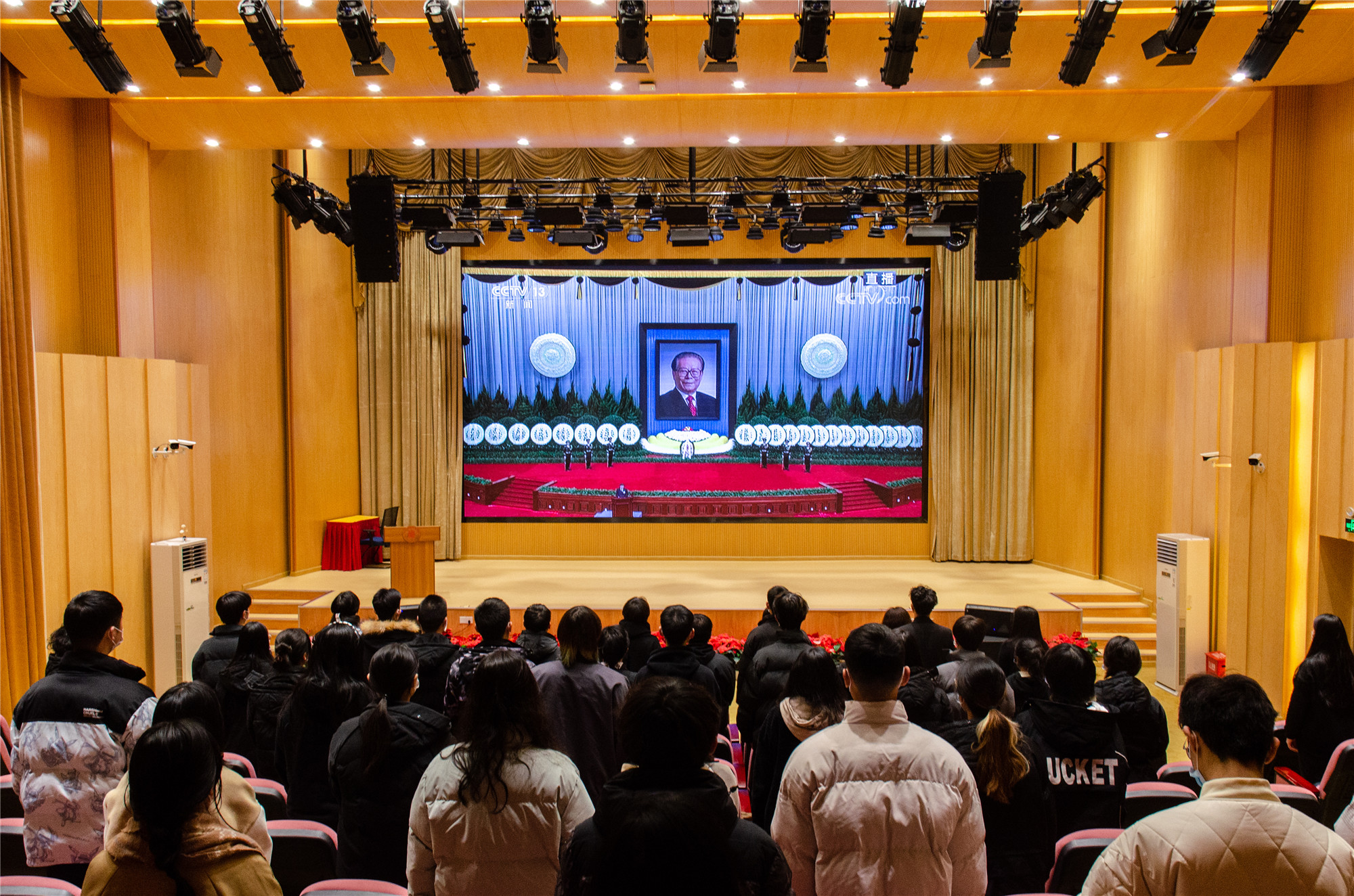 12月6日上午,中共中央、全国人大常委会、国务院、全国政协、中央军委在北京人民大会堂隆重举行江泽民同志追悼大会。中共中央总书记、国家主席、中央军委主席习近平在追悼大会上致悼词。澳门网投唯一官网广大党员干部师生满怀沉痛的心情,通过电视、网络和手机客户端等,采取集中收看和分散收看等方式收看大会直播,深切表达对江泽民同志的无比崇敬和悼念之情。
