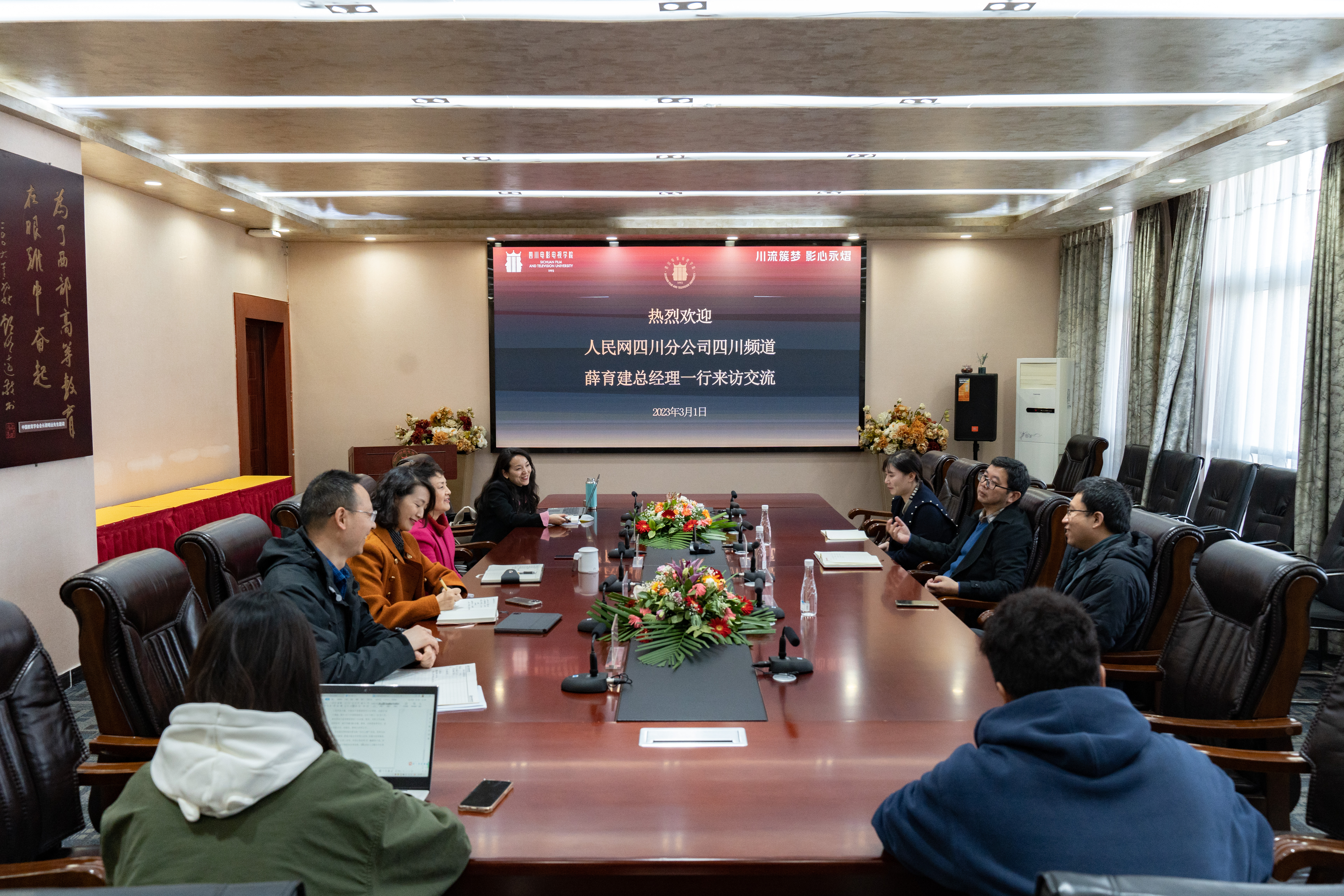 为搭建校媒联合的优质平台,探讨媒体与高校在人才培养、实践实训等方面的长效合作机制,3月1日,人民网四川分公司(四川频道)总经理薛育建一行来校调研,并就校媒双方深化合作进行深入交流。澳门网投唯一官网董事长黄元文,党委书记王小林,党委副书记、副校长罗思,以及相关职能部门负责人陪同参观并参加座谈。