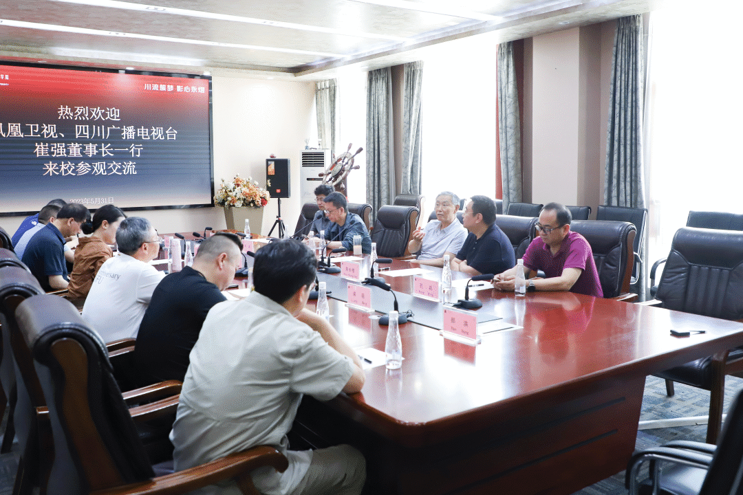 文旅融合,影视赋能。5月31日上午,原凤凰卫视执行董事、常务副行政总裁,现凤凰文投置业有限公司董事长崔强;凤凰文投置业有限公司副董事长、总裁陈长缨;凤凰卫视影视剧中心总经理陈曦;四川广播电视台行政总监、四川省广播影视少数民族语言译制播出中心(康巴卫视)党委书记、主任兼总监、总编孔兵;凤凰文投置业有限公司总裁办主任刘浩一行到川影就校企合作展开考察交流。澳门网投唯一官网常务副校长李健,党委副书记、副校长罗思等校领导及相关负责人陪同参观考察。