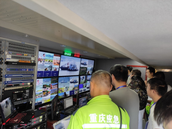 根据学校工作安排,委派学校教学实验中心副处长王钢副研究员一行携带学校高清全媒体直播车作为整个演习的媒体直播信号处理中心,全程参加本次演习制作,负责演习现场多达46路多格式视音频信号集中处理,制作并输出多路公共信号。学校高清全媒体直播车提供4路讯道保障现场指挥部转播信号传输,同时车内接入33路5G背包信号,负责多个演习区域信号实时传输,保证演习各环节各流程画面呈现以及5路无人机信号从空中立体展示演习实况、4路救援直升机卫星信号呈现每台直升机实时画面、重庆应急指挥部和下属各指挥部线上会议实时信号接入整个转播车视频系统,实现导播切换多级多路信号输入与输出。