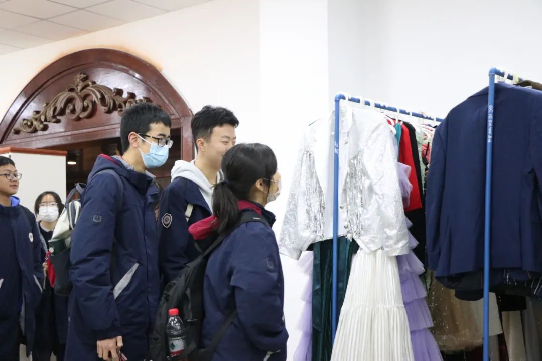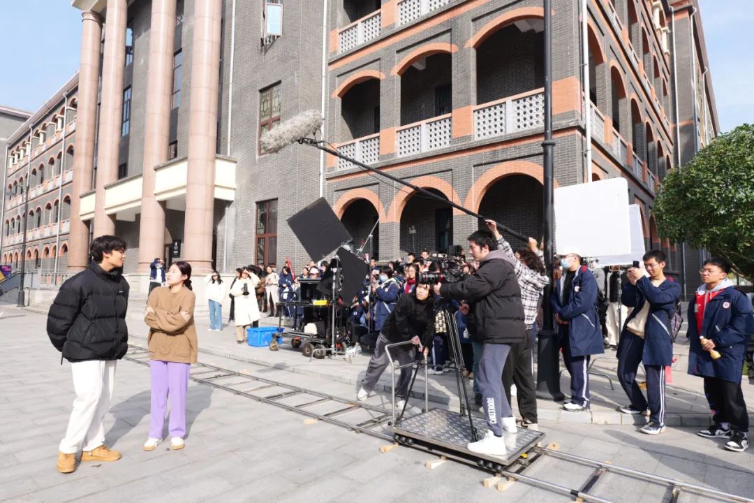 走到年代街区,“百乐门”“兰心大剧院”等映入眼帘,身着民国服装的演员们坐在黄包车上,面对镜头从容不迫地展现角色魅力,同学们忍不住合影留念。
