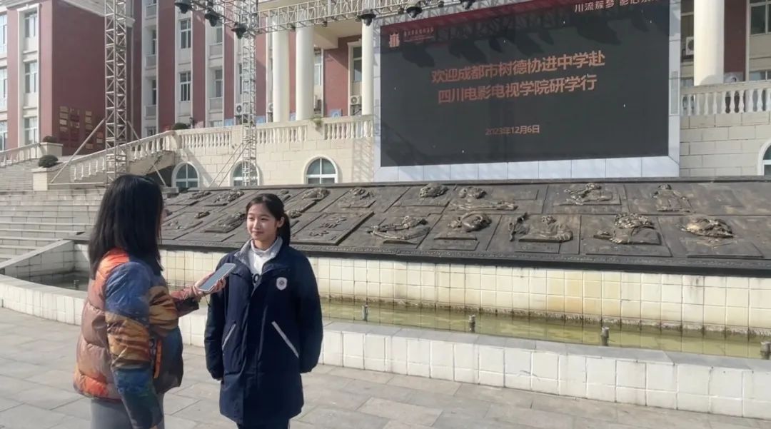 “此次研学活动让我们走出中学,走进高校,亲身体验了高校的学习生活,更加体验到了影视艺术的魅力!我本身就在学习播音主持,学校招就处傅老师的微讲座分享对我起到了很大的激励作用,同时此次川影研学活动,学校设计的参观流程非常丰富,我每一个都很感兴趣,特别想有更多的时间和师哥师姐坐下来一起细细的探讨一下“。成都市树德协进中学的杨真怡同学如是说。