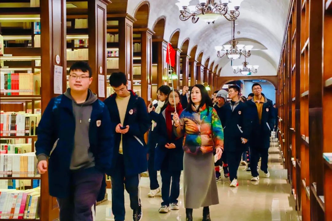 同学们的最终目的地是双创园图书馆,进入图书馆后,同学们自觉噤声,穿梭于层层叠叠的书架中,徜徉在书海的怀抱里。一位同学在观摩过程中小声地向带队老师发问,心中的疑问随着探索的脚步一起被解答。