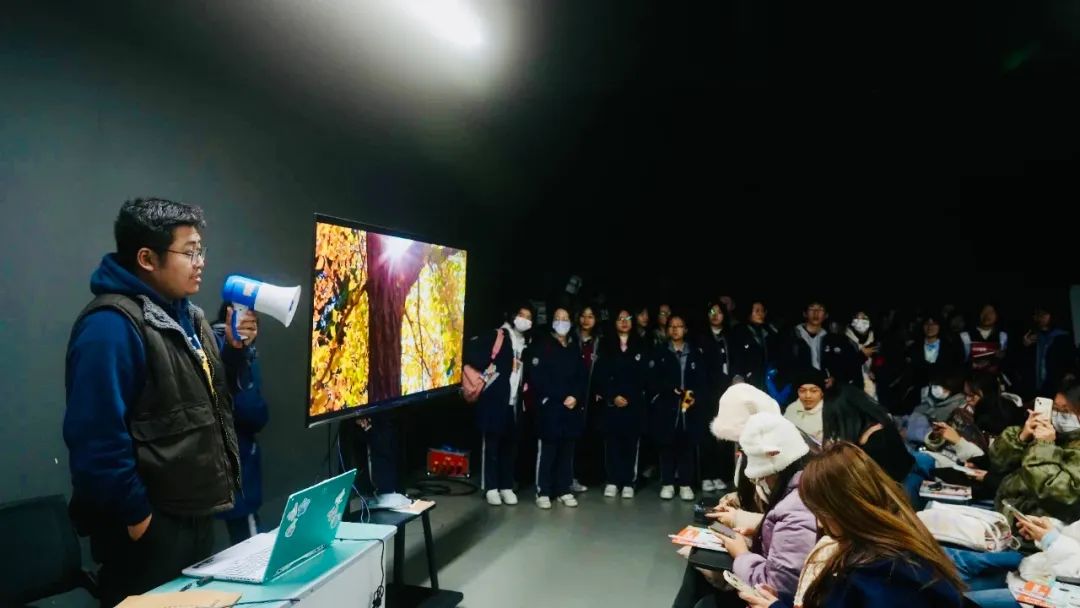 在研学活动正式开始前,川影电影学院副院长郭怡然对成都市树德协进中学师生致欢迎词,向同学们介绍了川影的知名校友和创作的文艺作品,以及在影视传媒行业内取得的创新成果。她以“电影是如何诞生的”为引,向前来研学的同学们生动介绍了此次的研学内容,将从导演、编剧、表演、服化道、摄影五个方面进行参观、体验,燃起同学们的探索欲。