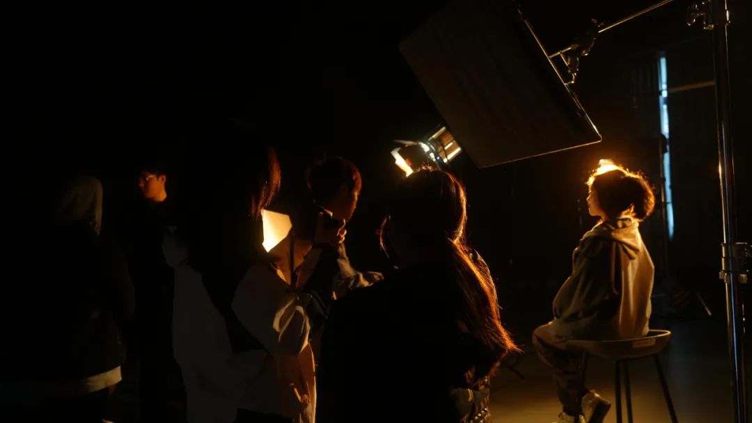 观影结束,留有余韵的同学们来到摄影棚和商业图片摄影棚,了解电影摄影拍摄,观摩电影灯光实践创作,认识灯光造型。老师正在讲解灯光对于人物造型的塑造,同学们了解到各种灯光设备如何摆放能勾勒出人物的最佳曲线,摄影机里呈现出光影的魅力。