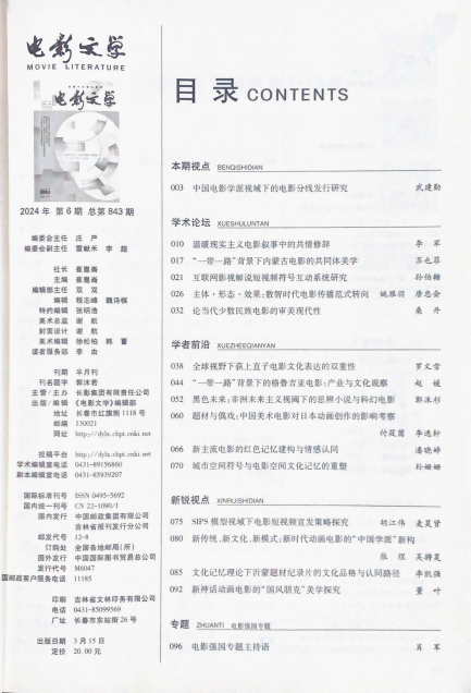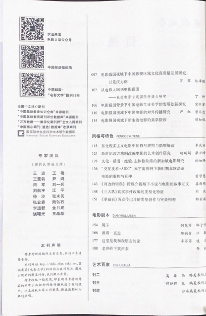 《电影文学》创刊于1958年,其宗旨是立足电影电视的理论研究,关注导演表演的创作思潮,拓展学术争鸣的文化视野,探究艺术流派的价值取向。其栏目设有:学术论坛、博士论坛、新锐视点、导演评述、动漫研究、高校方桌、热片劲评、风格与特色、作品透视、环球纵横、文本研究、影视传播、艺术学苑、影视翻译、影视教育、新电影史料、电影剧本等栏目。