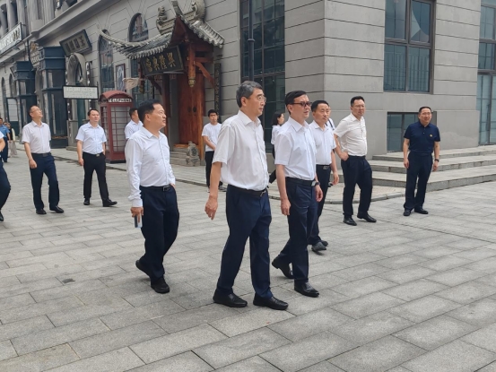 王小林书记(左四)向余远友副厅长(右四)介绍文创城