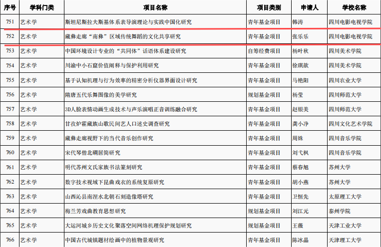 近日,从教育部社科司获悉,我校电视学院院长助理蒋峰副教授、电影学院韩涛副教授、舞蹈学院张乐乐老师分别主持申报的《新时代家庭伦理电影的道德叙事研究》《斯坦尼斯拉夫斯基体系表导演理论与实践中国化研究》《藏彝走廊“南彝”区域传统舞蹈的文化共享研究》获2024年度教育部人文社会科学研究青年基金项目立项。
