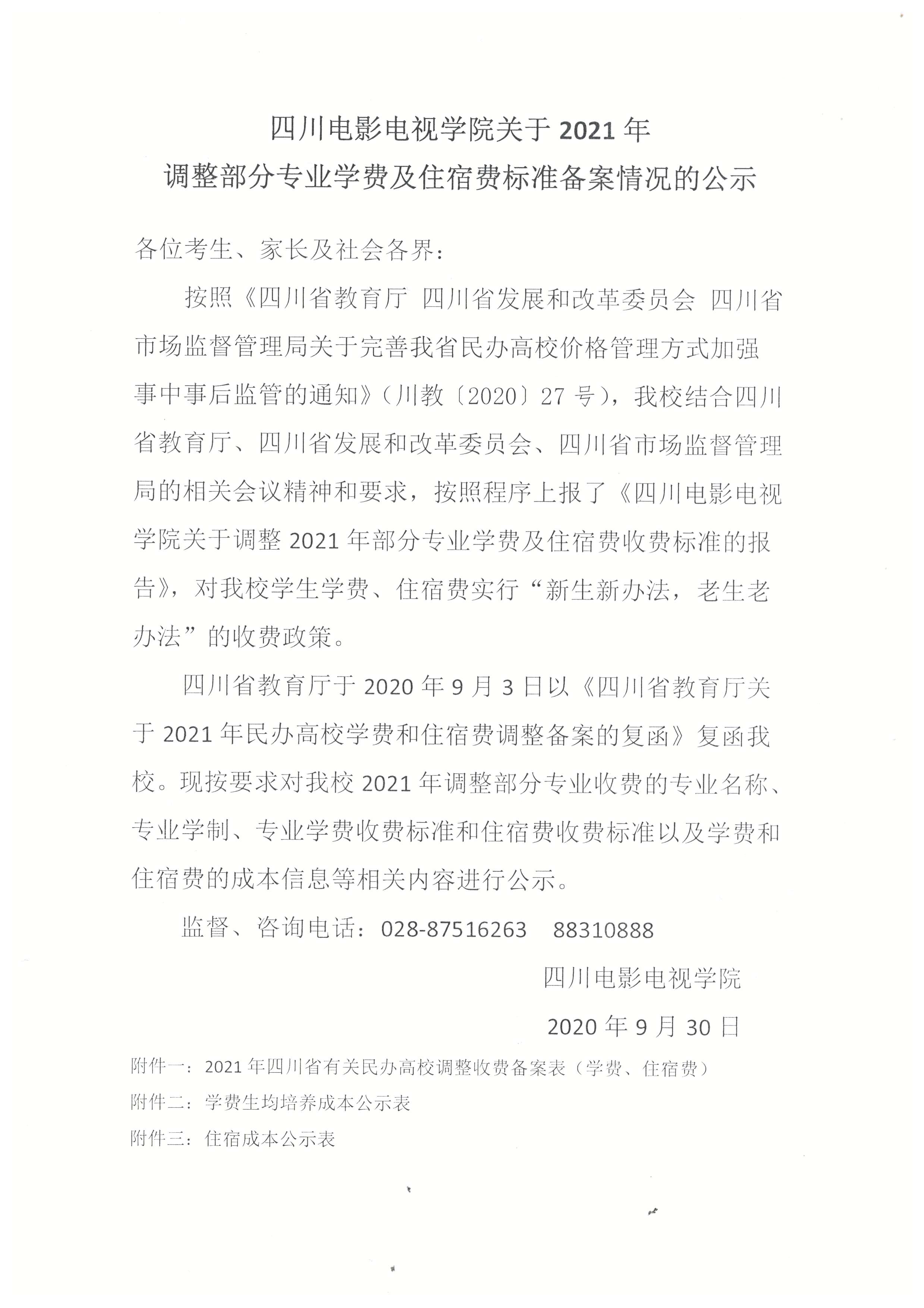 澳门网投唯一官网关于2021年调整部分专业学费及住宿费标准备案情况的公示
